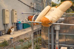 *カバー干しているところ。ハナちゃんママが見ていました。