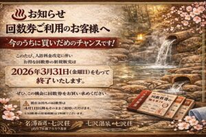 普段から七沢温泉をご利用いただいている方には とてもお得な回数券となっています。