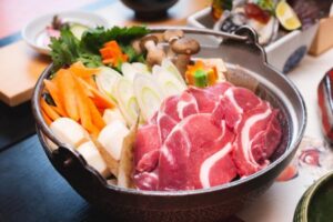 臭みが少なく、猪鍋は店舗により味付けが変わるため、企業秘密の味噌ベースでいただきます。