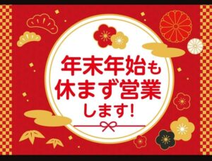 年末年始休まず営業致します。尚、年末年始はシーズン料金になります。