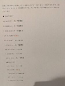 3月・4月はランチ営業しない日もあります。下記の通りです⤵
