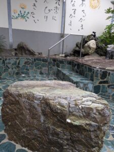 七沢荘の女性露天風呂に入ると、まず目に飛び込んでくるのが大きな岩。