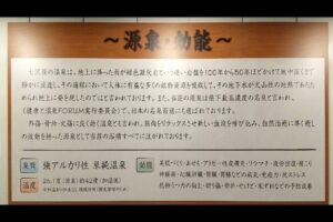 当館の温泉は、地下600mより採掘する天然温泉で、pH9.78の強アルカリの単純温泉です。単純温泉というと効能が少ないのかなと感じるかもしれませんが、刺激が少なく人を選ばない温泉として人気があります。効能としてはリウマチや関節痛、五十肩打撲、捻挫などありますが、胃腸機能の低下、高血圧、糖尿病、ストレス症状などにも効果があるとされています。(分析表による)