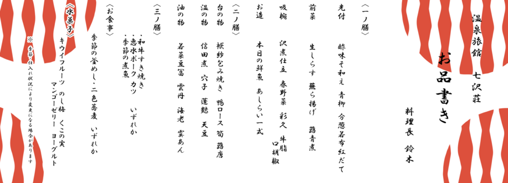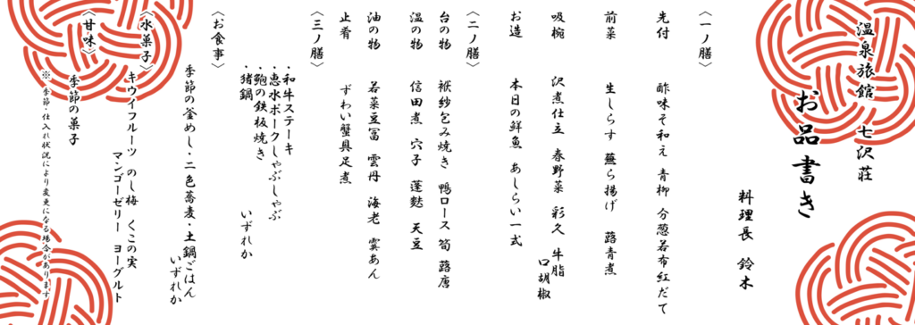 まずは贅沢会席プランのお品書きです!