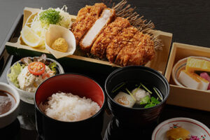 清川で丁寧に育てられたブランド豚「恵水ポーク」を独自の製法で揚げた自慢の味のカツ膳です。