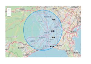 実はここを中心に半径20kmを描くと、意外なほど多くの市町村がすぐ近くに広がっているんです。