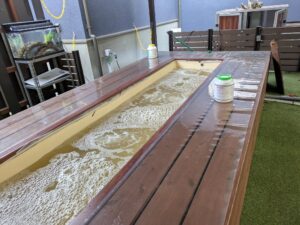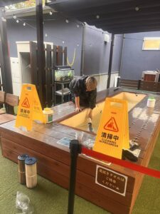 ドクターフィッシュの足湯から、冬季の温かい足湯へ切り替え作業を実施。意外とこれ大変なんですよ(笑)