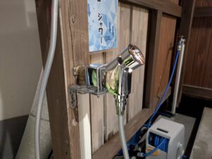 ・女性側の源泉の水シャワー、直りました。