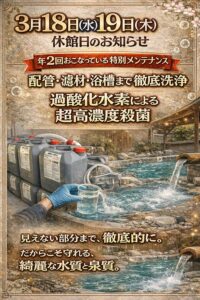 休館日明け、 さらに整ったお湯で 皆さまをお迎えいたします。