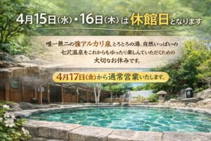 館内メンテナンスや温泉管理などのため、休館日とさせていただきます。